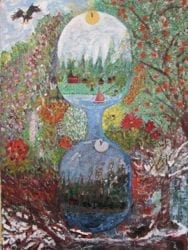 Illustration : “Le sablier de la vie”. Huile sur toile coton 3D . 50×70 cm couteaux pinceaux.(Maastricht)